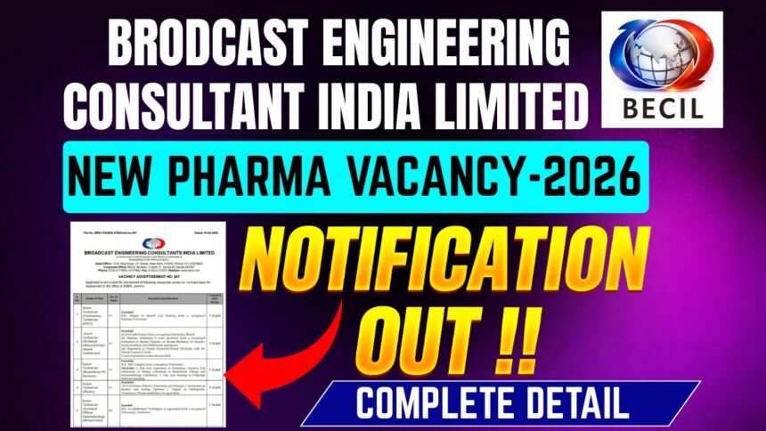 Broadcast Engineering Consultants India Limited (BECIL) has released an official recruitment notification for Pharmacist posts on a contract basis for deployment at AIIMS Jammu.