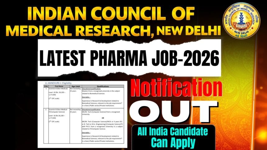 The Indian Council of Medical Research (ICMR) has officially released the notification for Scientist‑B (Non‑Medical) posts through Direct Recruitment. The recruitment examination will be conducted by AIIMS, New Delhi. This is a golden opportunity for candidates from Pharmacy, Life Sciences, and related research backgrounds who aspire to work with India’s premier medical research organization.